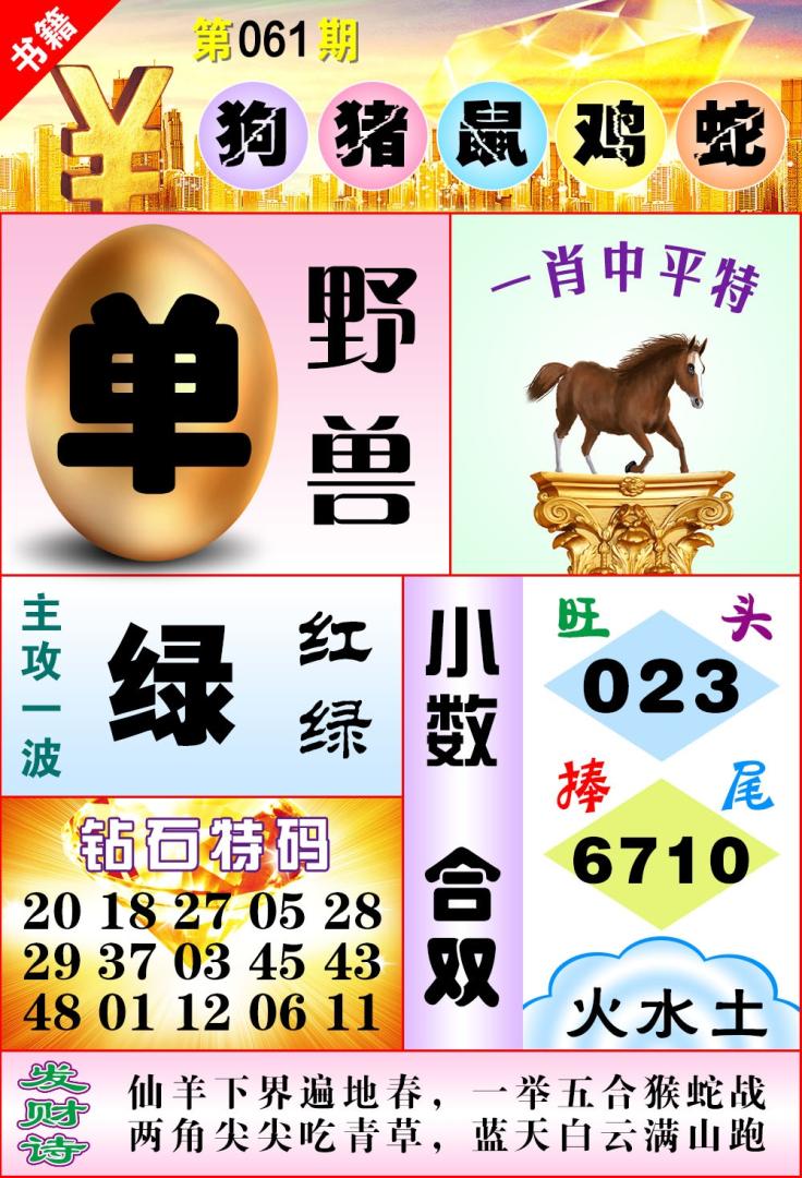 | 053期五肖:牛鼠龙羊虎 | ⑥码:18.42.31.15.12.05 | ||